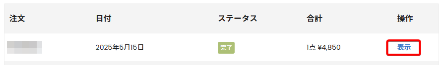 注文履歴の横にある「表示」をクリックすることで、注文の詳細を閲覧できる他、プレミアムクーポンの確認もできるようになりました。