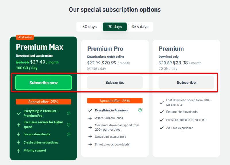 - Premium Max → 100GB