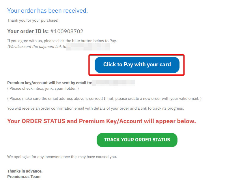 「Click to Pay with your card」をクリックして、支払いに進みます。