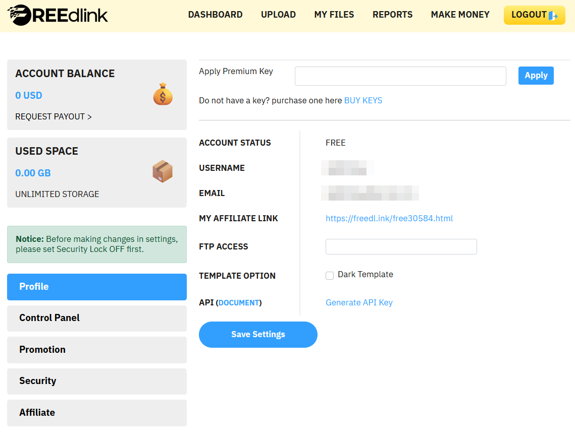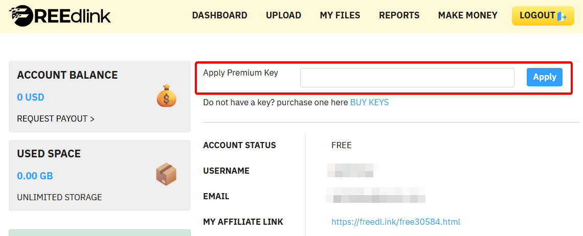 これで「FreeDlink」アカウントのプレミアム化は完了です。
