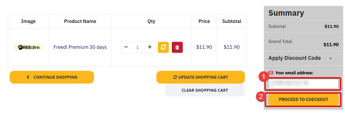 2番の「PROCEED TO CHECKOUT」をクリックします。